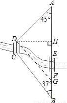 如图所示,A,B两地之间有条河,原来从A地到B地需要经过桥DC,沿折线A?D?C?B到达.现在新建了桥EF,可直接沿直线AB从A地到达B地.已知BC=11km,∠A=45°,∠B=37°,桥DC和AB平行,则现在从A地到B地可比原来少走多少路程(结果精确到0.1km.参考数据: