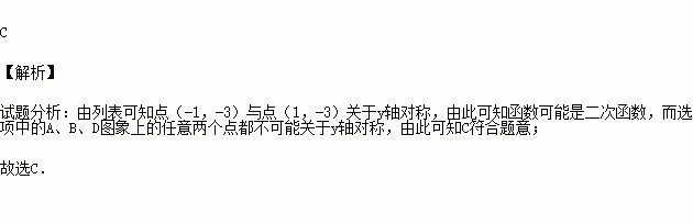已知两个变量和,它们之间的3组对应值如下表所示, 则y 与x之间的函数关系式可能是( )