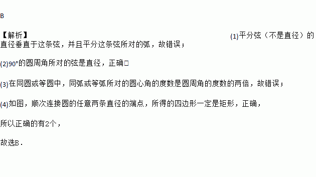 (4)如下图,顺次连接圆的任意两条直径的端点,所得的四边形一定是矩形.