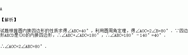 如图,四边形ABCD内接于⊙O,已知∠ADC=140°,则∠AOC的大小是( )