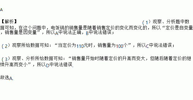 A. 定价是自变量,销量是因变量 B. 销量是自变量,定价是因变量