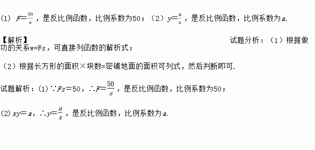 (1)功是50J时,力F与物体在力的方向上通过的距离s的函数关系;
