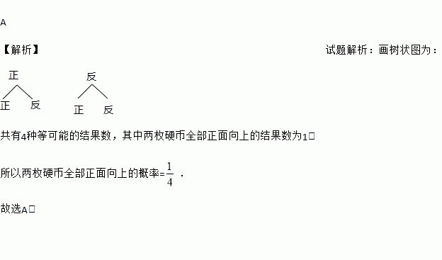 小张抛掷两枚质地均匀的硬币,出现两枚硬币全部正面朝上的概率是( )