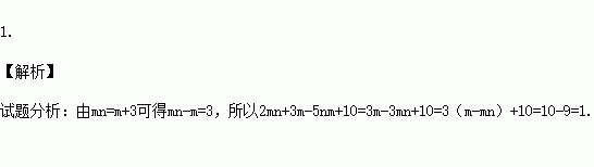 若mn=m+3,则2mn+3m-5nm+10=_____.