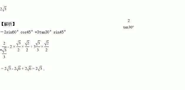 计算-2sin60°cos45°+3tan30°sin45°=_______________.
