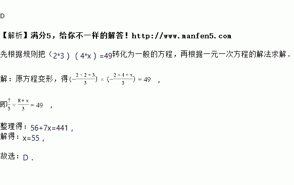 ,则方程(2*3)(4*x)=49的解为( )