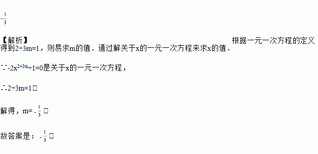 若-2x2+3m+1=0是关于x的一元一次方程,则m=________.