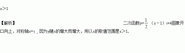 已知二次函数y=(x﹣1)2+4,若y随x的增大而增大,则x的取值范围是________