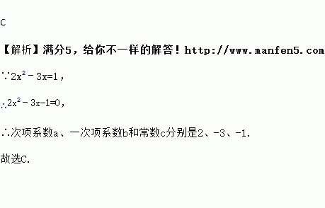 一元二次方程的二次项系数、一次项系数和常数分别是( )
