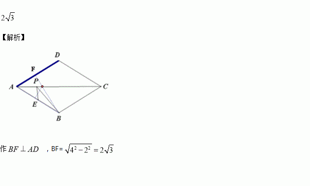 如图,菱形ABCD周长为16,∠ADC=120°,E是AB的中点,P是对角线AC上的一个动点,则PE+PB的最小值是___________.