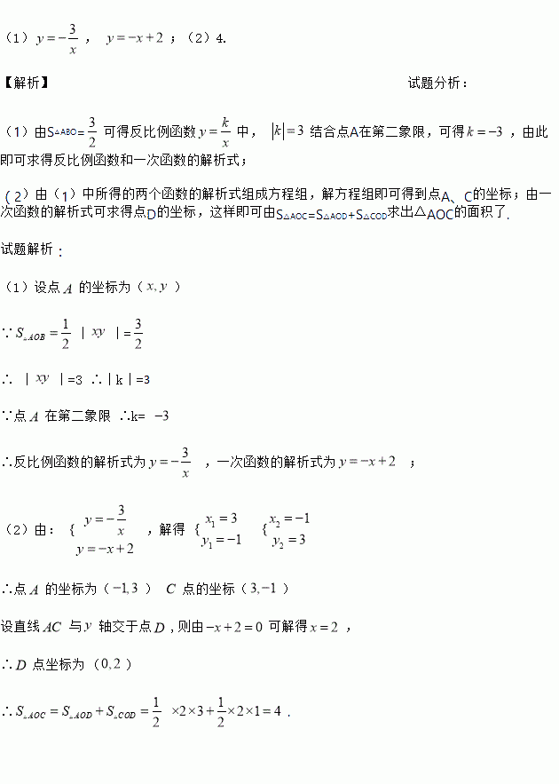 点A是双曲线与直线在第二象限的交点,AB垂直轴于点B,且S△ABO=.