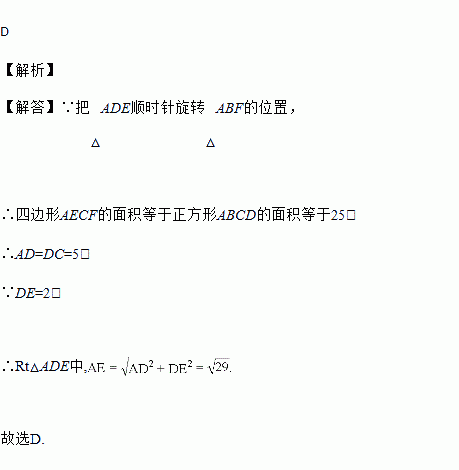 如图,点是正方形的边上一点,把绕点顺时针旋转到的位置,若四边形的面积为25,,则的长为( )