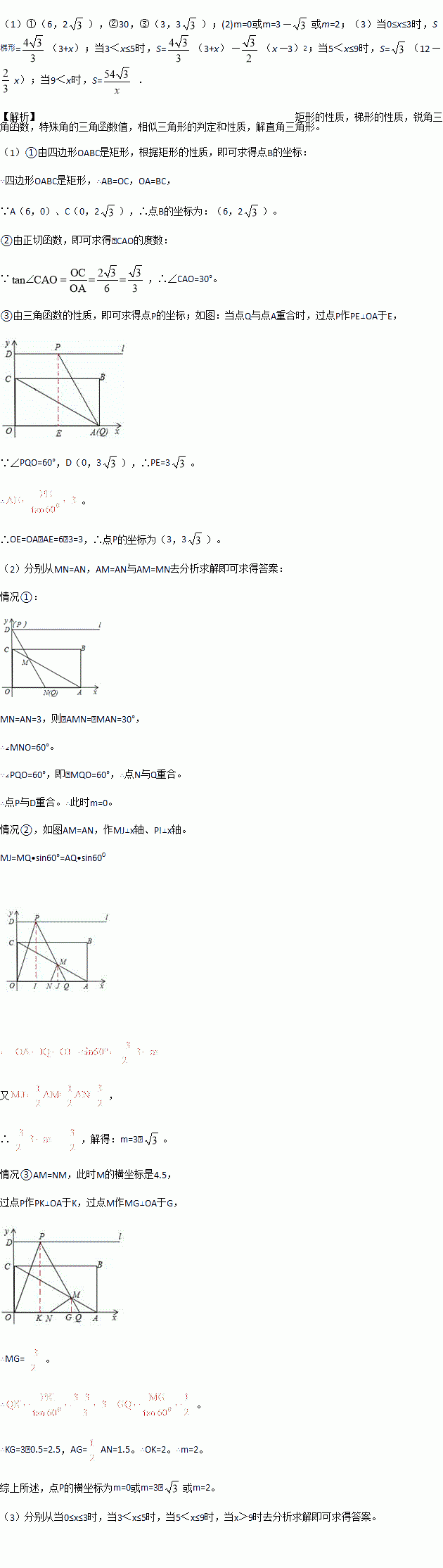 ),射线l过点D且与x轴平行,点P、Q分别是l和x轴正半轴上动点,满足∠PQO=60°.