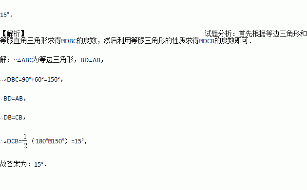 如图,△ABC为等边三角形,BD⊥AB,BD=AB,则∠DCB =____________.