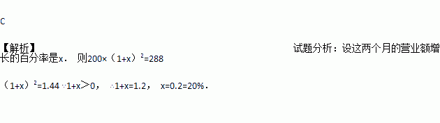 某超市一月份的营业额为200万元,三月份的营业额为288万元,如果每月比上月增长的百分数相同,则平均每月的增长( )