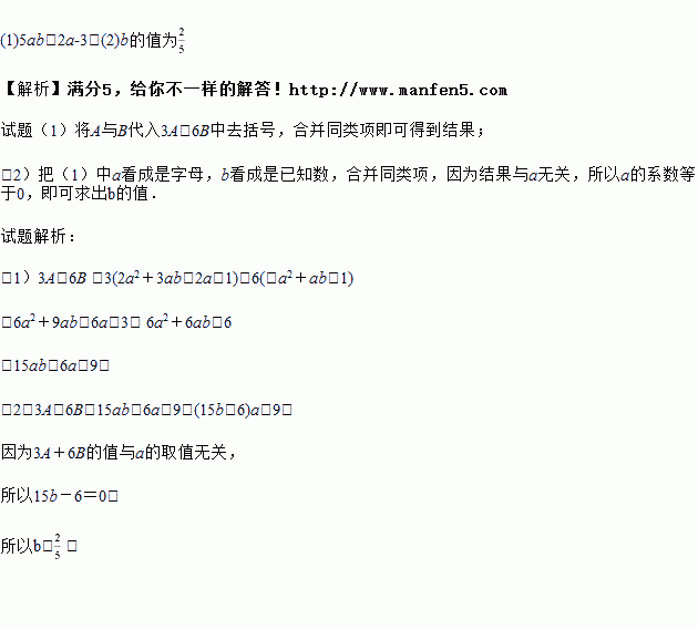 已知:A=2a2+3ab-2a-1,B=-a2+ab-1