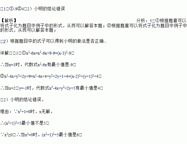 的最小值并写出取到最小值时的x值.经过观察式子结构特征,小明联想到可以用解一元二次方程中的配方法来解决问题,具体分析过程如下: