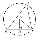 如图,△ABC内接于⊙O,OD⊥BC于D,∠A=50°,则∠OCD的度数是_____°.