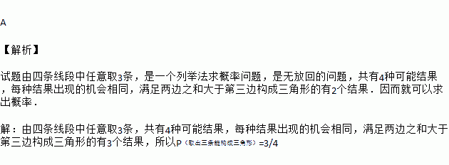有长度分别为3、5、7、9的四条线段,从中任取三条线段能组成三角形的概率是( )