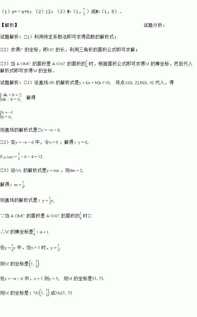 如图,在平面直角坐标系中,过点B(6,0)的直线AB与直线OA相交于点A(4,2),动点M沿路线O→A→C运动.