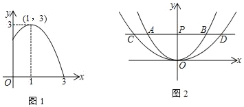 (3)如图2,点P(0,m2)(m>0),在y轴正半轴上,过点P作平行于x轴的直线,分别交抛物线C1:y=x2于点A、B,交抛物线C2:y=x2于点C、D,求的值.