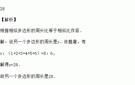 一个多边形的边长依次为1,2,3,4,5,6,与它相似的另一个多边形的最大边长为8,那么另一个多边形的周长是__________.
