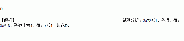 将不等式3x-2<1的解表示在数轴上,正确的是( )