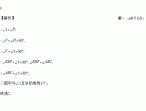如图,AB∥CD,CE⊥BD,则图中与∠1互余的角有( )