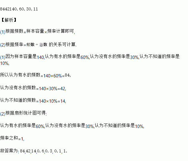 (2)认为“有水”的频率为_______,认为“没有水”的频率是______,认为“不知道”的频率是_______,频率之和为________.