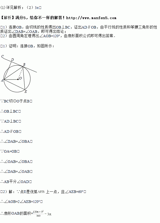(1)求证:AB平分∠OAD;
