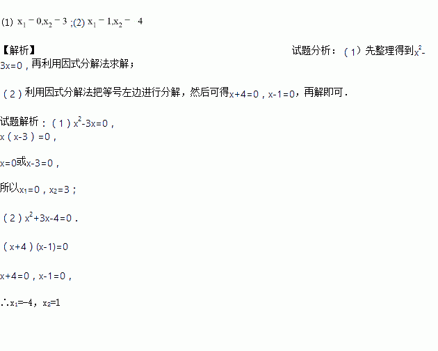 (1)x2+3=3(x+1); (2)x2+3x-4=0.