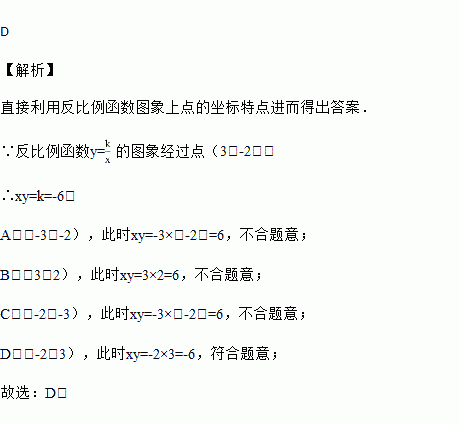 (题文)反比例函数y=的图象经过点(3,﹣2),下列各点在图象上的是( )