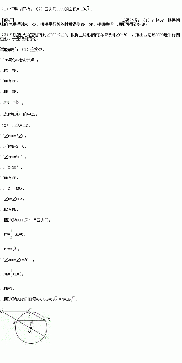 (2)若∠C=∠D,求四边形BCPD的面积.