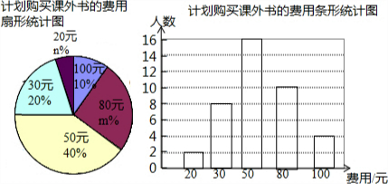 (4)如果该校九年级共有学生320人,那么请你估计计划购买课外书的费用为80元的九年级学生有多少?