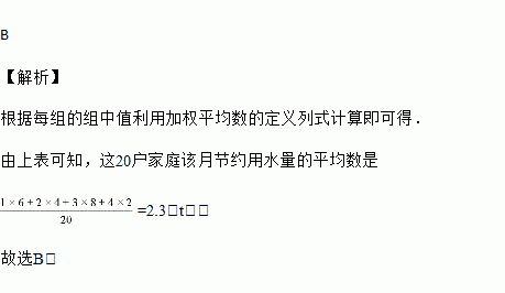 由上表可知,这20户家庭该月节约用水量的平均数是( )