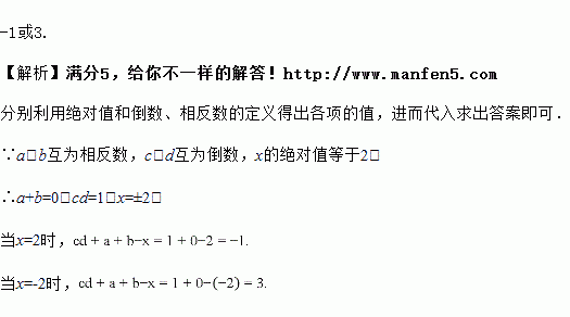 若a,b互为相反数, c,d互为倒数,|x|=2,求cd+a+b-x的值.