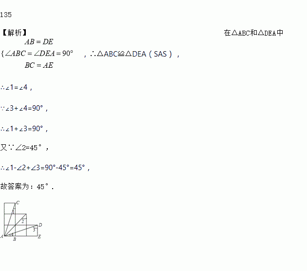 如图为6个边长相等的正方形的组合图形,则∠1+∠2+∠3= ___________度