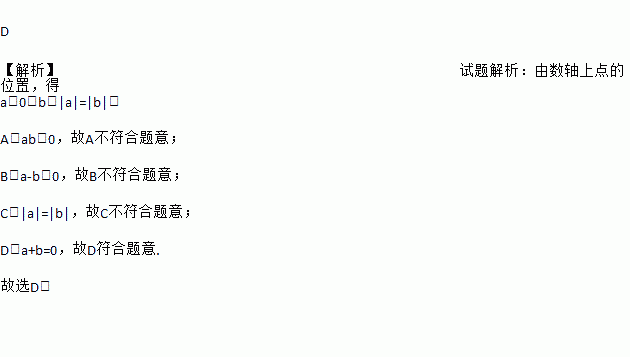 在数轴上,有理数a,b对应的点的位置如图所示,且这两个点关于原点对称,下列结论中,正确的是