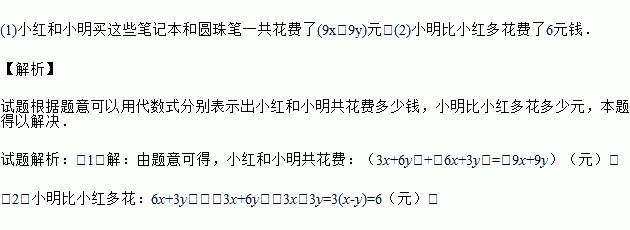 (1)小红和小明买这些笔记本和圆珠笔一共花费多少元钱?