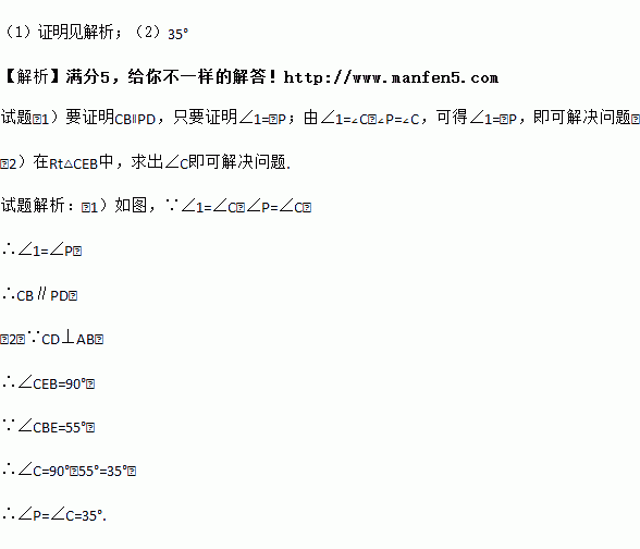 如图,AB是⊙O的直径,弦CD⊥AB于点E,点P⊙O上,∠1=∠C.