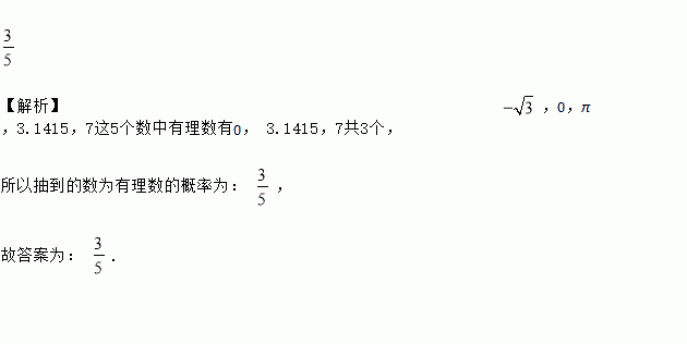 从,0,π,3.1415,7这5个数中随机抽取一个数,抽到的数为有理数的概率是____.