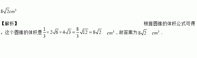 一个圆锥的底面积是2 cm2,高是4 cm,那么这个圆锥的体积是____.