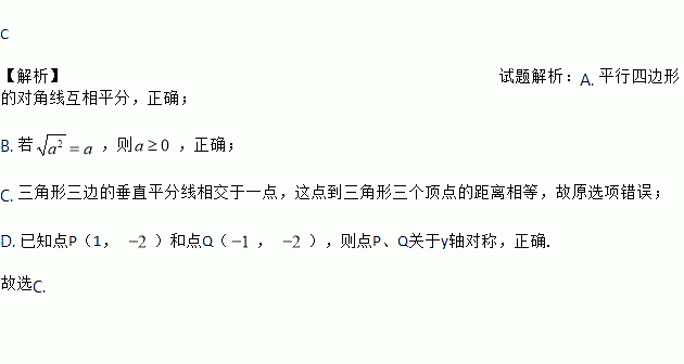 C. 三角形三边的垂直平分线相交于一点,这点到三角形三条边的距离相等