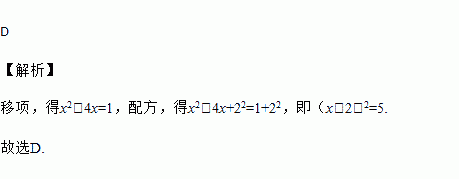 A. (x+2)2=3 B. (x+2)2=5 C. (x-2)2=3 D. (x-2)2=5