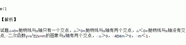 若二次函数y=x2-2x+m的图象与x轴有两个交点,则m的取值范围是_______.