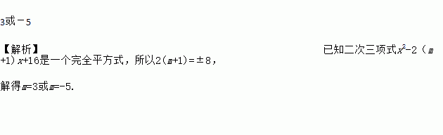 如果二次三项式是一个完全平方式,那么m的值是_______.