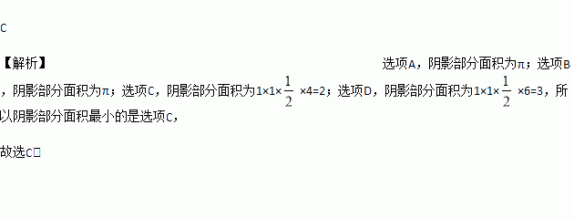 下面四个图形中,阴影部分面积最小的是( )。