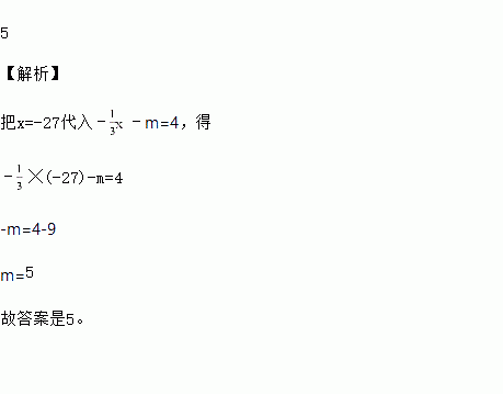 若x=﹣27是﹣﹣m=4的解,则m=________ .