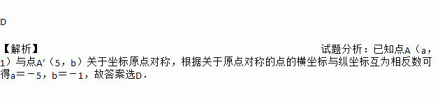 已知点A(,1)与点A′(5,)关于坐标原点对称,则实数、的值是