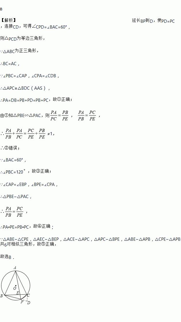 是劣弧BC上任意一点,PA与BC交于点E,有如下结论: